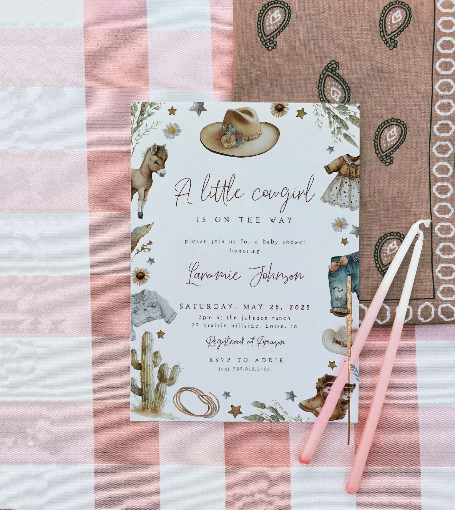Cowgirl Baby Shower Einladung Bearbeitbare Western Girl Baby Shower druckbare Einladungsvorlage Ein kleines Cowgirl ist unterwegs S474 - Etsy.de