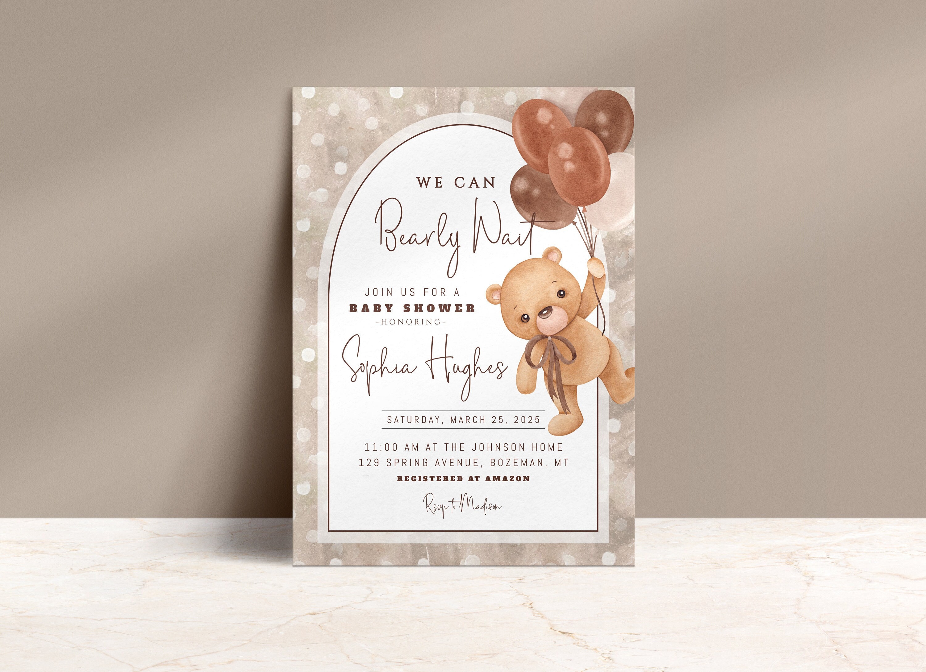 Überraschungs-Babyparty-Einladung, Pssst .... Es ist eine Überraschungs- Babyparty, Junge Babyparty, Teddybär-Themed Sofort Download, Corjl - Etsy.de