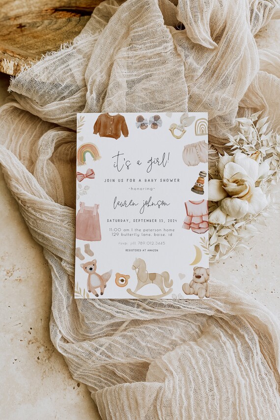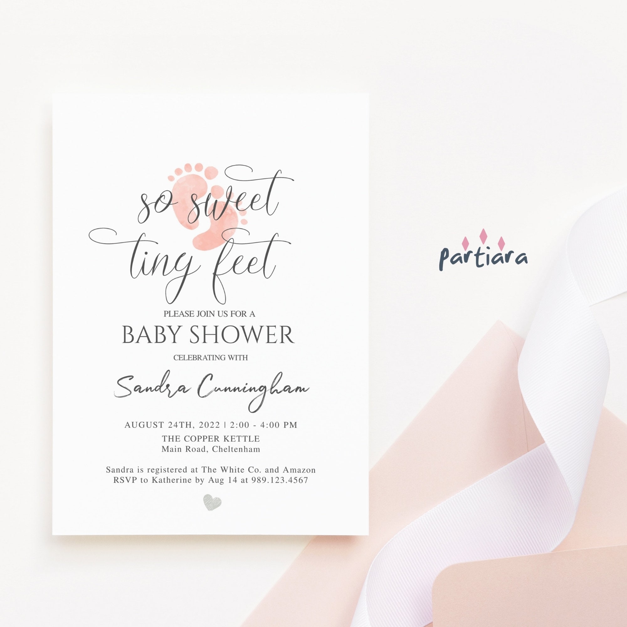 Mädchen-Baby-Füße laden Babyparty-Einladung ein Minimalist - Etsy.de