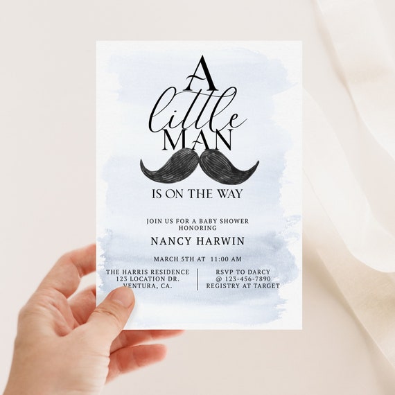 Bearbeitbar, Little Man Babyparty, Fliege einladen, Babyparty, Ein kleiner Mann ist auf dem Weg, Baby Boy, Es ist ein Junge, oh Baby, Schnurrbart, Ooh Boy - Etsy.de