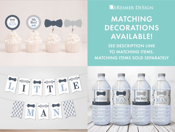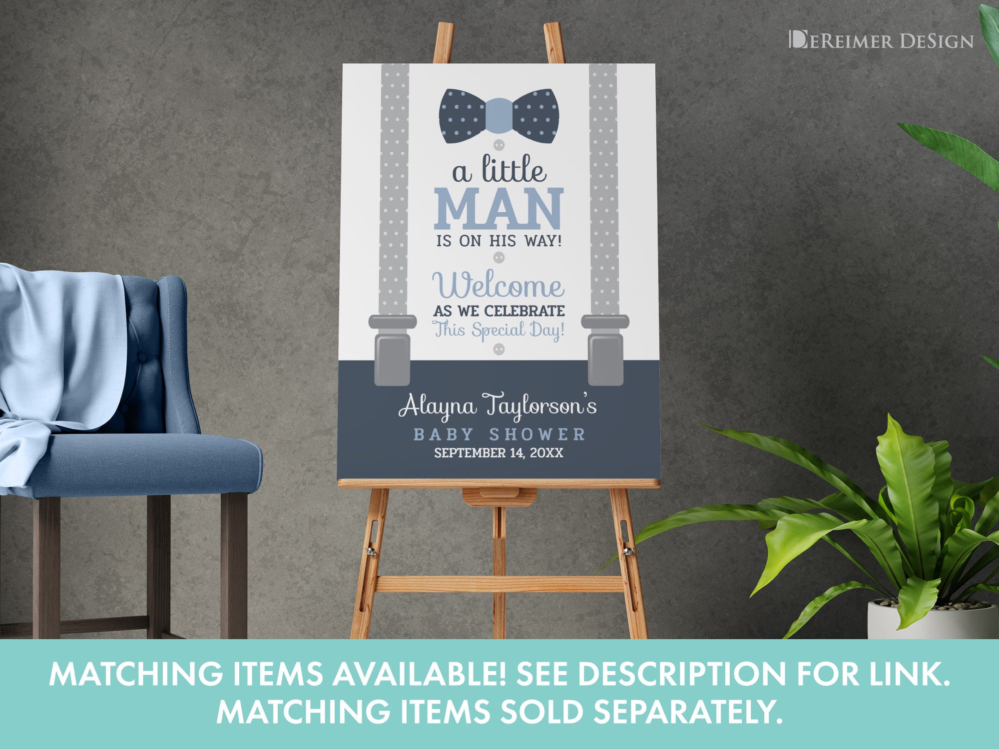 Editable Little Man Baby Shower Invitation, Bow Tie, Suspenders, Navy Blue, Gray, Book Card, Self-editing Corjl Templates, C03 - Etsy Canada