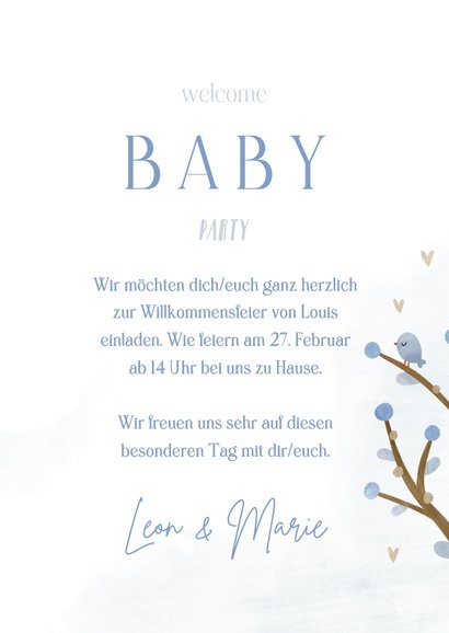 Einladung zur Babyparty blaue Wasserfarbe | Send a Smile