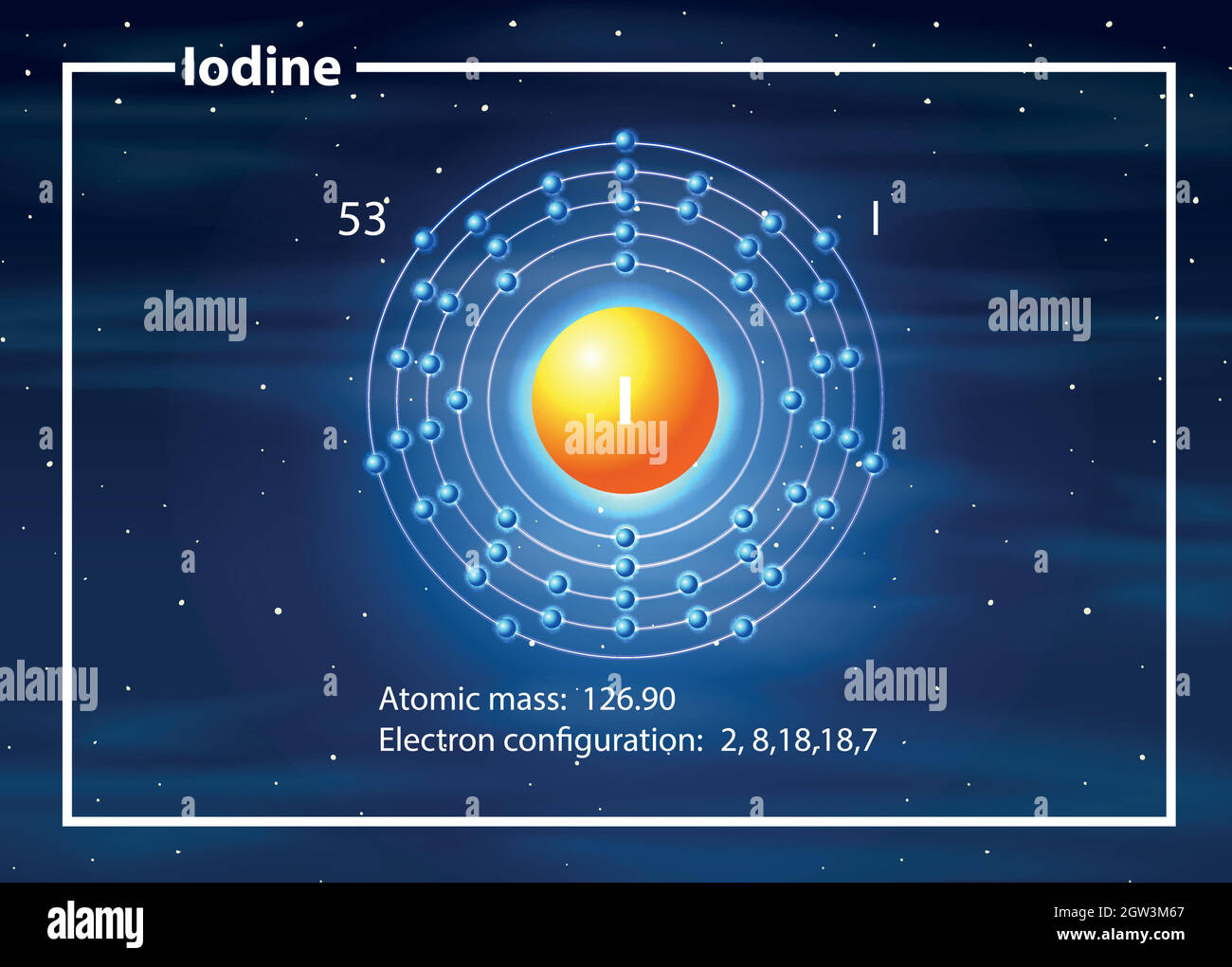 Jod Elektronenkonfiguration atom Abbildung Stock-Vektorgrafik - Alamy