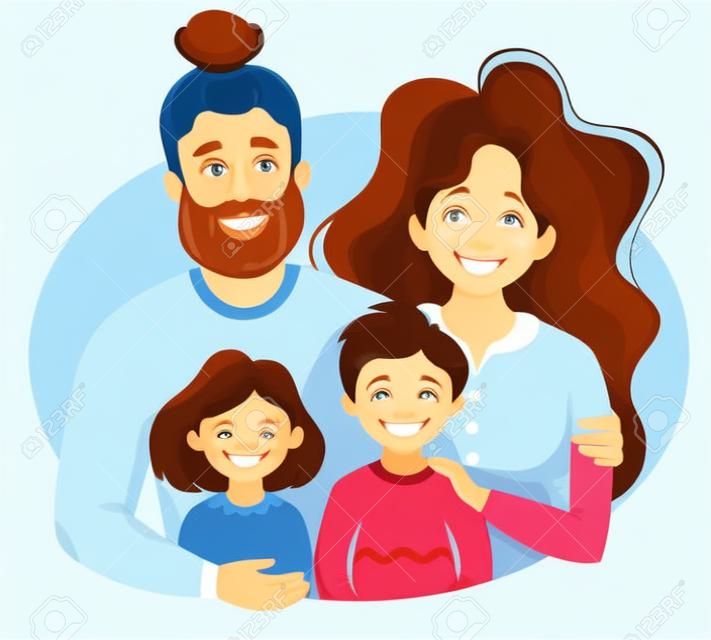 Glückliche Familie Mit Sohn Und Tochter. Eltern, Die Kinder Umarmen. Vektor-Illustration Lizenzfrei nutzbare SVG, Vektorgrafiken, Clip Arts, Illustrationen. Image 168089080.