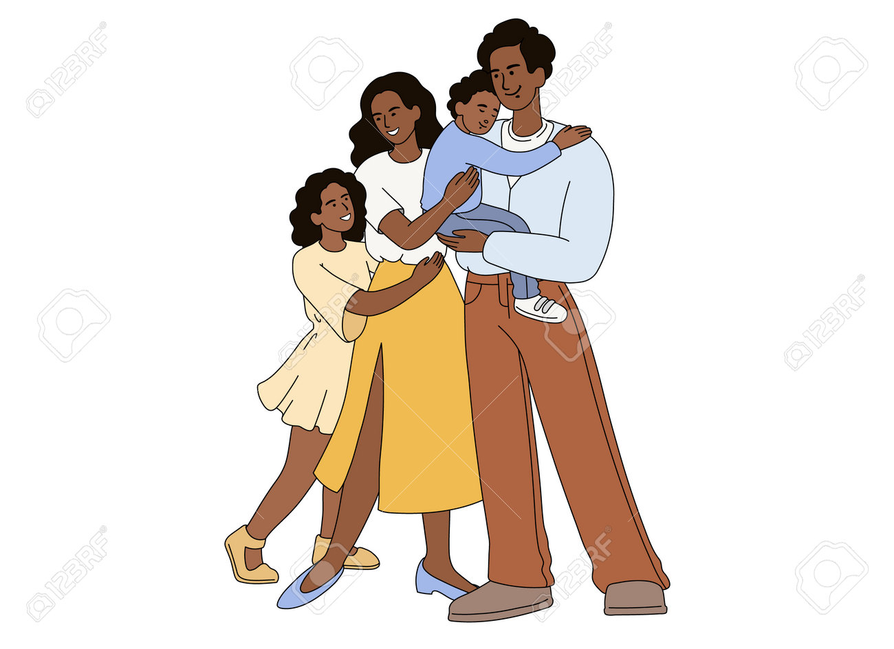 Glückliche afroamerikanische Familie mit Sohn und Tochter. Eltern umarmen Kinder. Vektorillustration 2292955 Vektor Kunst bei Vecteezy