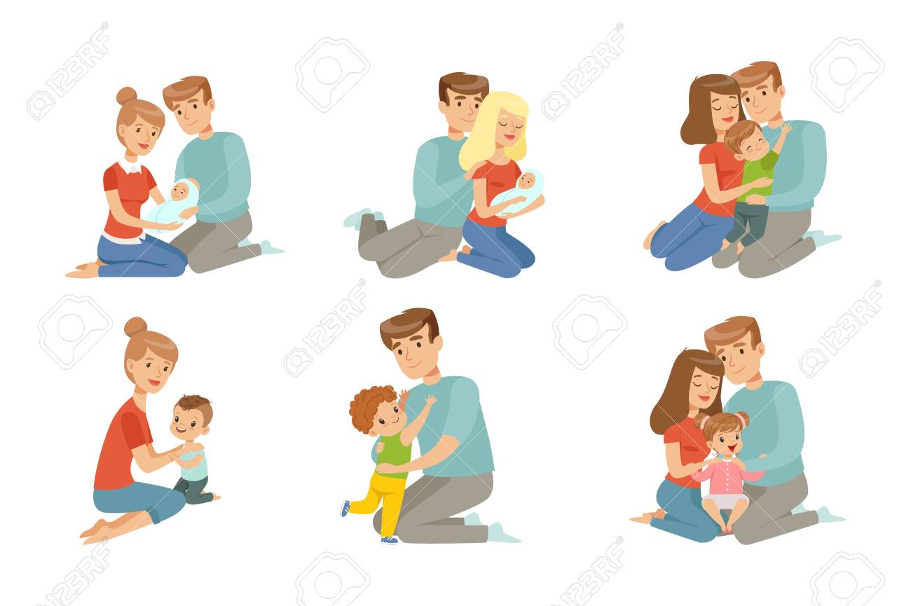 Glückliche Eltern Umarmen Und Küssen Ihre Kinder Set, Elternschaft Konzept Cartoon Stil Vektor Illustration Lizenzfrei nutzbare SVG, Vektorgrafiken, Clip Arts, Illustrationen. Image 164047874.