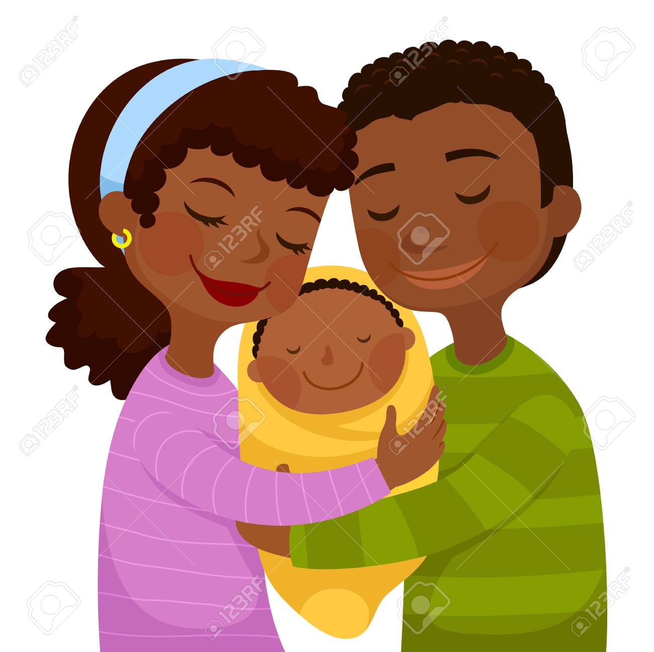 Glückliche Dunkelhäutige Eltern, Die Ein Kleines Baby Umarmen Lizenzfrei nutzbare SVG, Vektorgrafiken, Clip Arts, Illustrationen. Image 93007320.