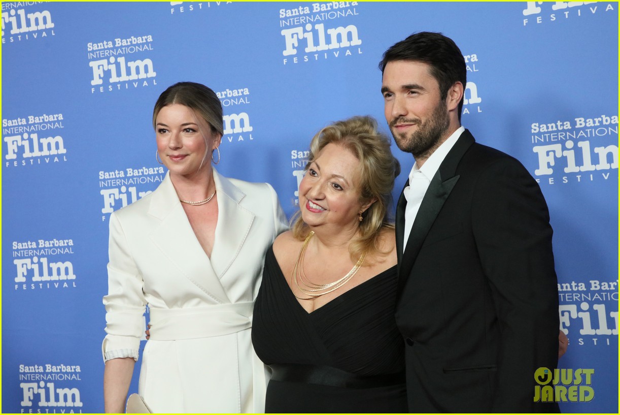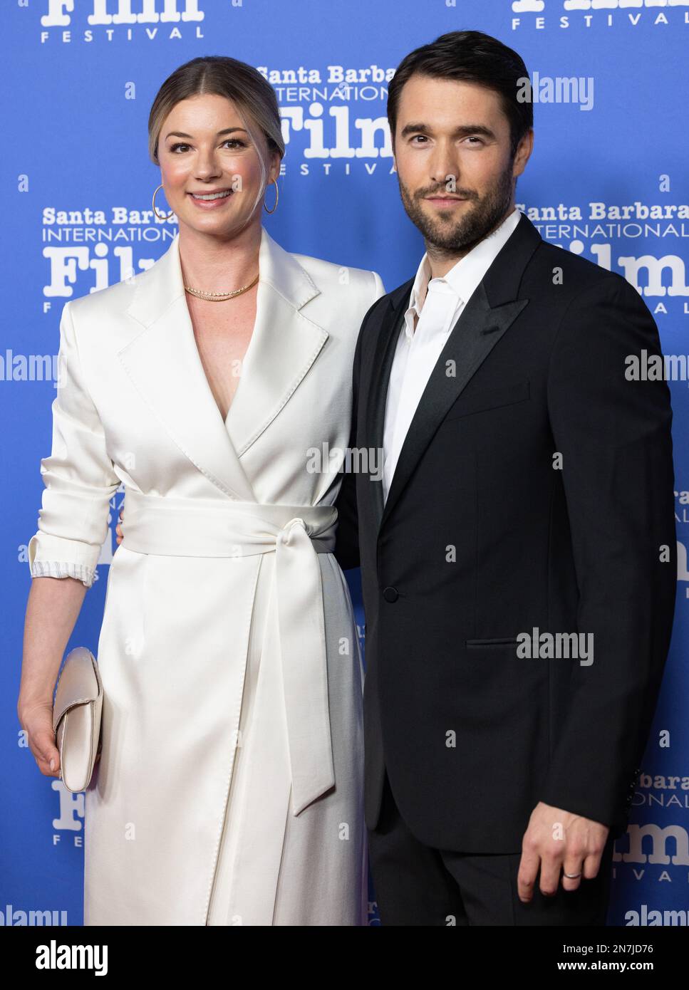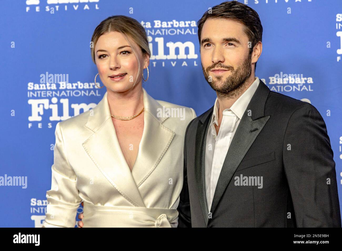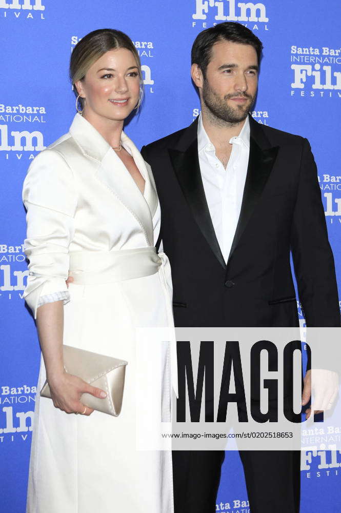 Emily VanCamp with husband Josh Bowman on the red carpet at the 2023 Santa Barbara International Film Festival for Miranda's Victim Stock Photo - Alamy