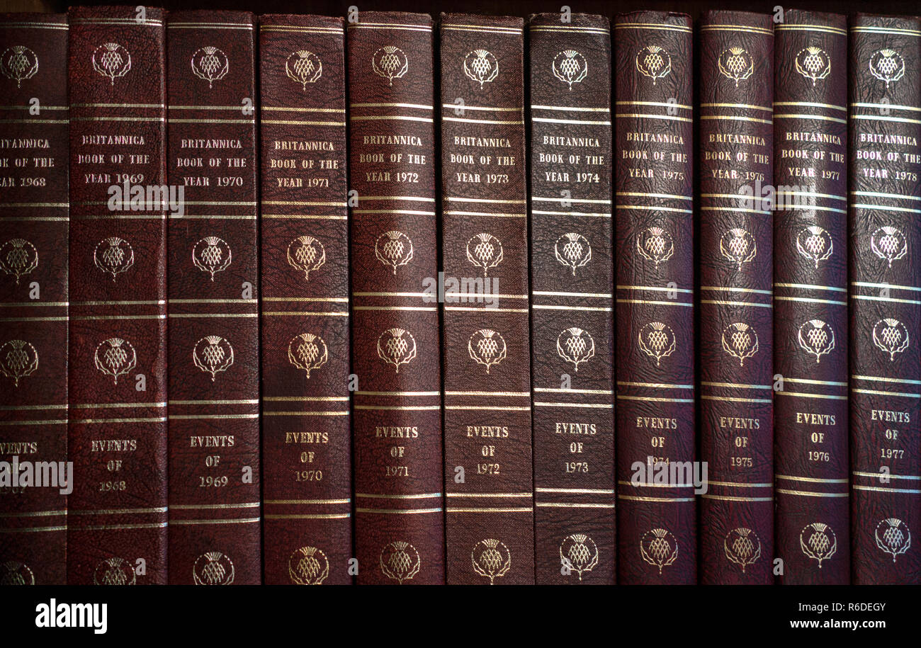 Set of Britannica Book of the Year is an illustrated set of Encyclopedia's on a book shelf in an English house Stock Photo - Alamy