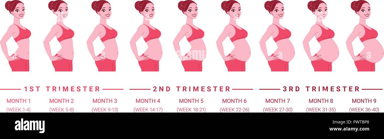 Stadien der Schwangerschaft und Entwicklung des Fötus. Stock ...