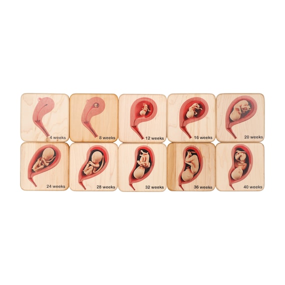 Stadien der Schwangerschaft und fetalen Entwicklung Holzfliesen ...