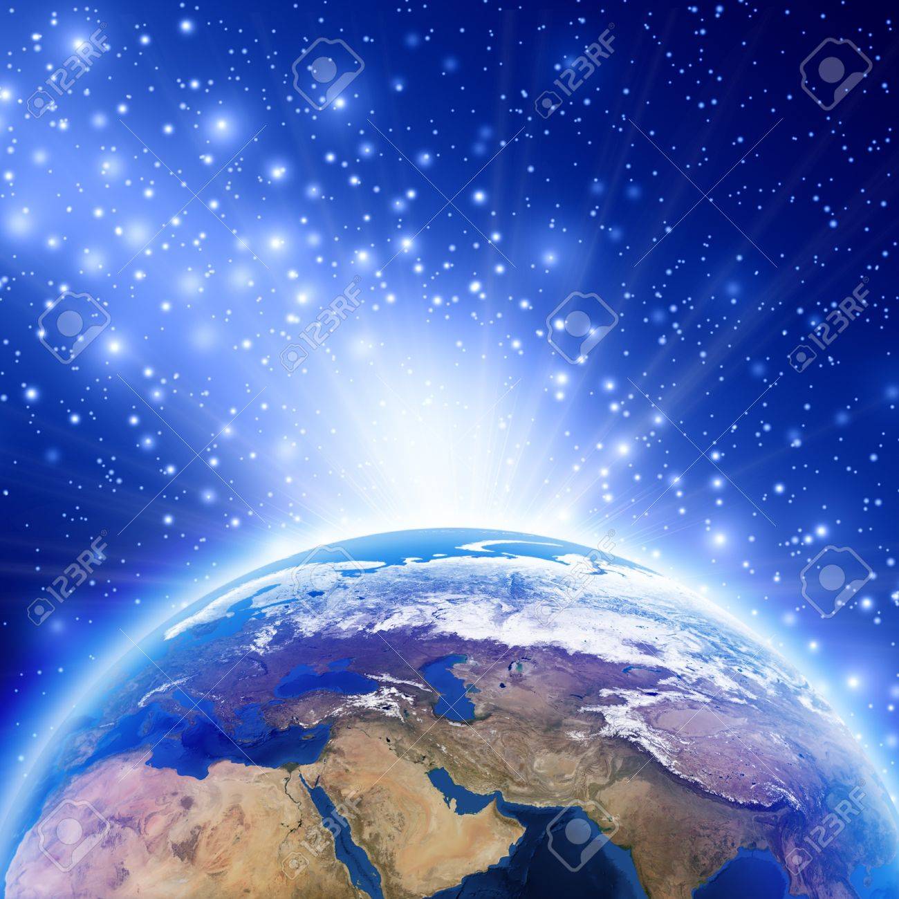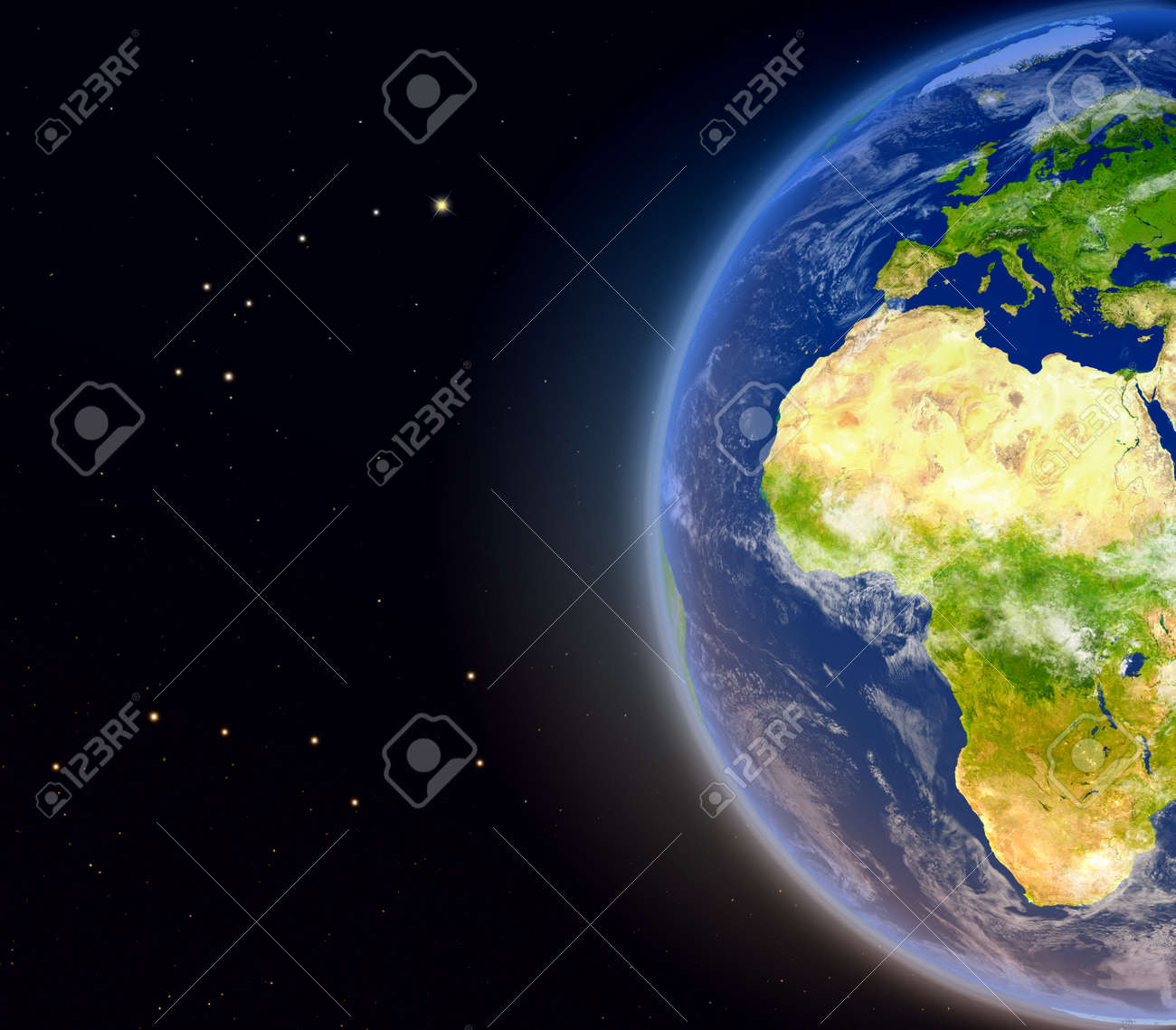 Planet Erde Mit Sonnenaufgang Afrika, Europa Und Asien, Bild Erdekugel Von Der NASA Zur Verfügung Gestellt Lizenzfreie Fotos, Bilder und Stock Fotografie. Image 21494019.