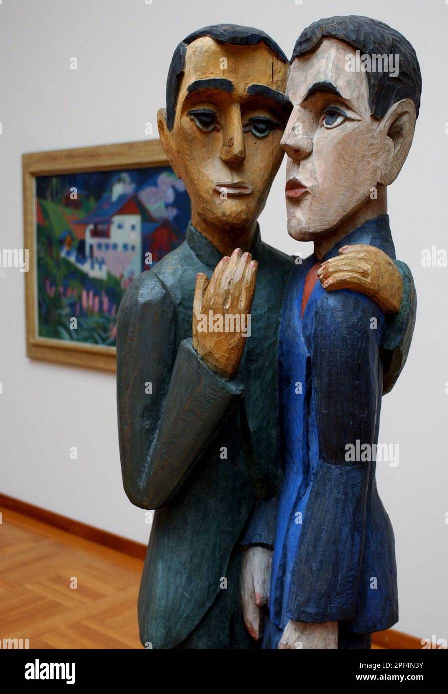 Die Skulptur "Die Freunde" aus dem Jahre 1924 von Ernst Ludwig Kirchner steht am Donnerstag, 25. September 2003, in der Sonderausstellung im Kunstmuseum Basel, die auf die fruehen Schaffensjahre in Davos fokussiert