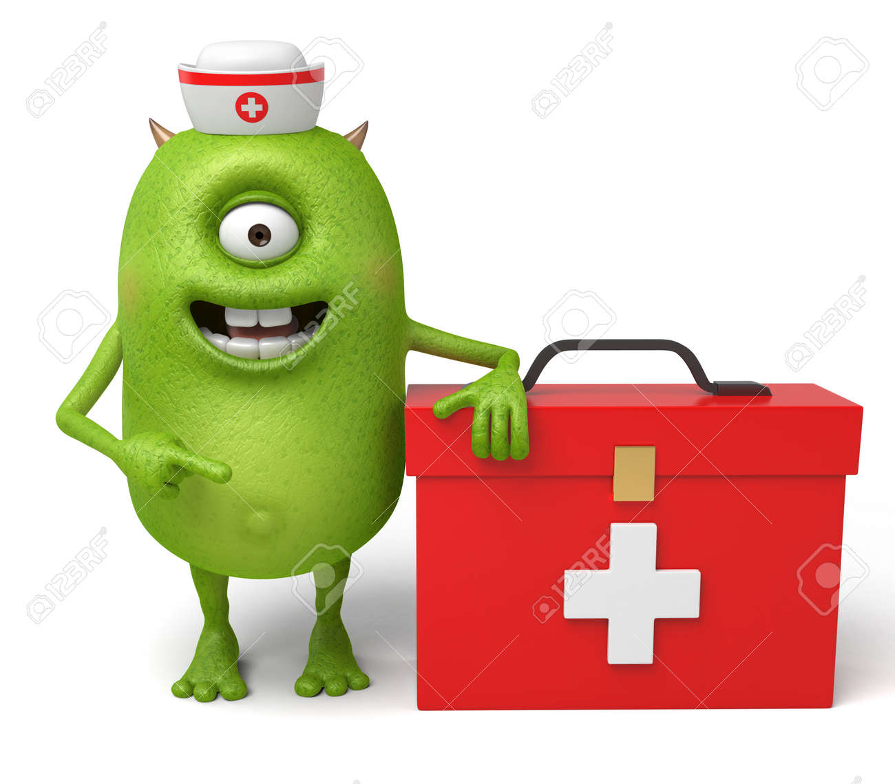 Kleine Monster, Das Eine Erste-Hilfe-Kasten Trägt Zu Sparen Lizenzfreie Fotos, Bilder und Stock Fotografie. Image 48057836.