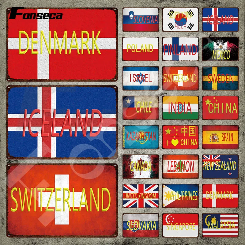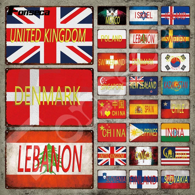 Nationalen Fahnen und Land Namen Metall Zeichen Zinn Zeichen ...