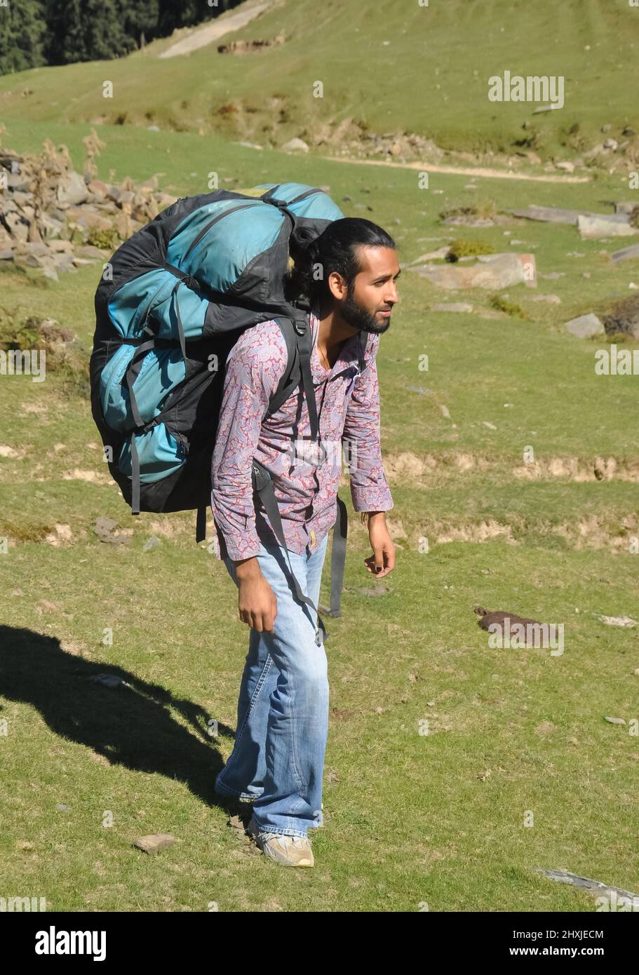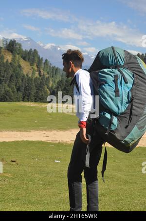 Ein männlicher Tourist mit Fallschirmrucksack im Berg Stockfotografie - Alamy