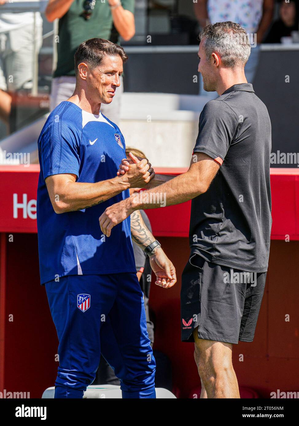 Madrid, Spain. 04th Oct, 2023. Madrid - Atletico de Madrid O19 coach Fernando Torres, Feyenoord O19 coach Robin van Persie during the 2nd leg of the UEFA Youth League group stage between