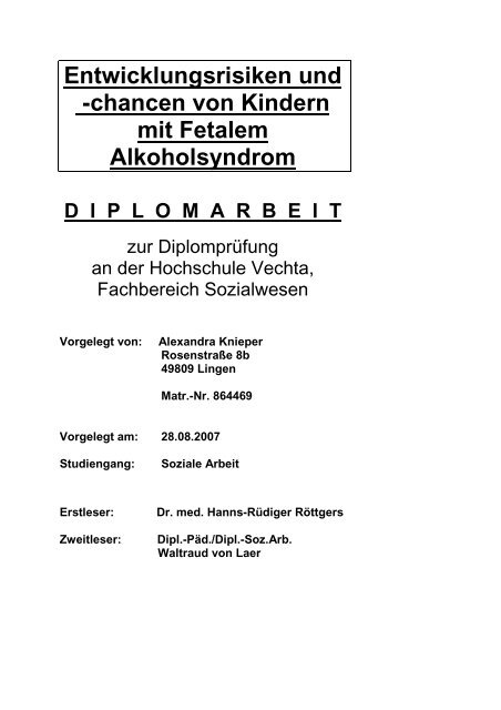 Zum aktuellen Forschungsstand des fötalen Alkoholsyndroms - GRIN