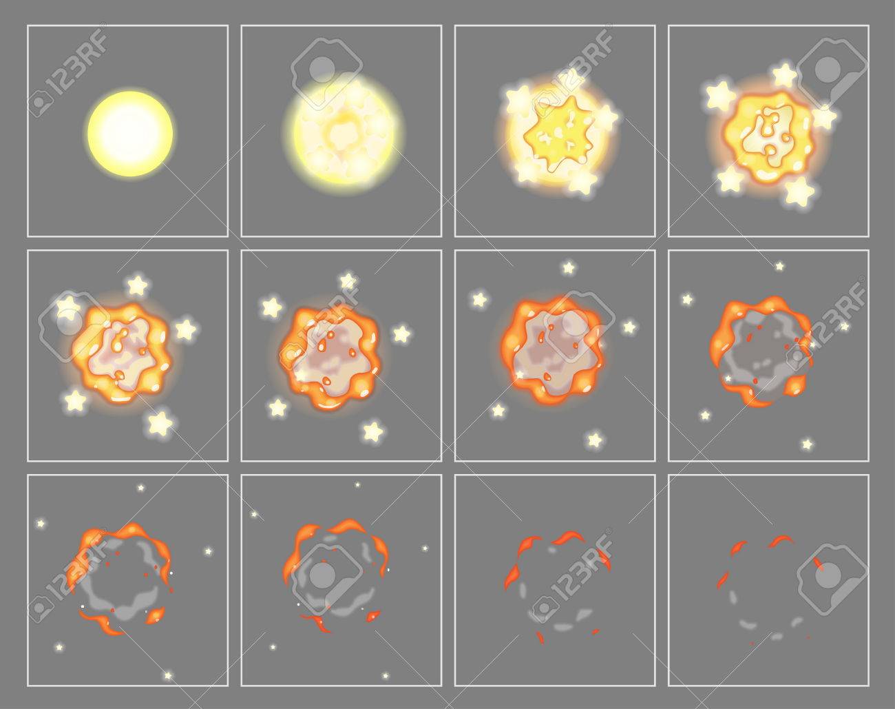 Explosion, Karikaturexplosions-Animationsrahmen Für Spiel Sprite ...