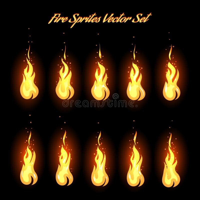 Feuer Sprite Blatt. Cartoon Vektor Flamme Spiel Animation. Set Von ...