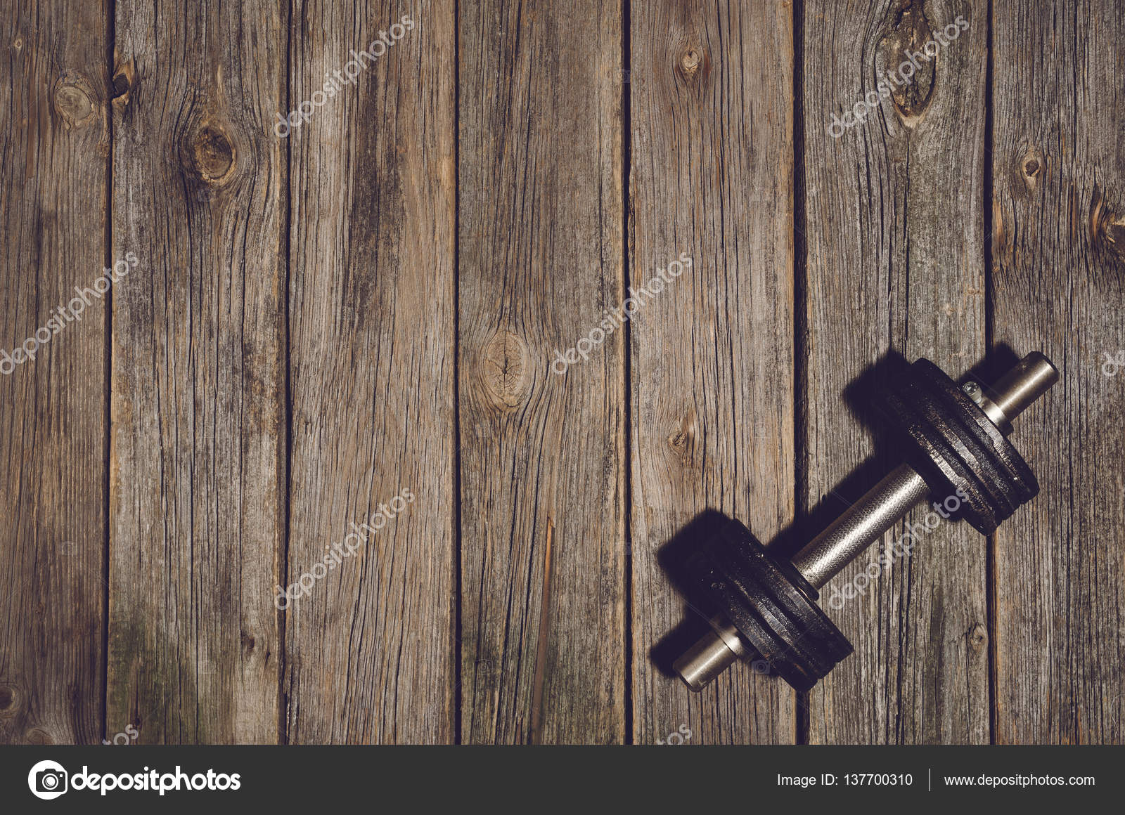 Health fitness background. Dumbbell, sneakers, measuring tape, phone, green apple, earphone, towels, power grip and water bottle on wooden background Stock Photo - Alamy