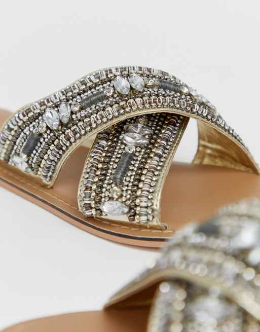 ASOS DESIGN – Fortune – Flache Sandalen in Gold mit Metallverzierung | ASOS