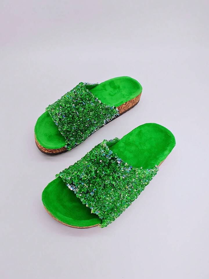 Neue Ankunft Damen Flache Sandalen mit Diamant Pailletten , Perfekt für Zuhause , Urlaub , und Outdoor Aktivitäten , Damen Grün Pelzig Hausschuhe für und Leichtigkeit | aktuelle Trends, günstig kaufen | SHEIN Deutschland