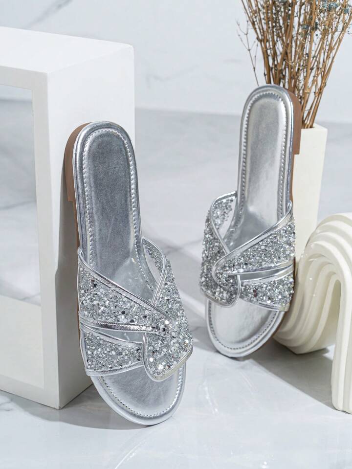 Casual, Elegante, Modebewusste Flache Sandalen Für Frauen Mit Glas-diamanten Dekoration | aktuelle Trends, günstig kaufen | SHEIN Deutschland