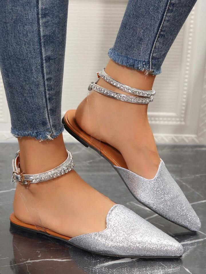 Neue Ankunft Plus Größe Spitze Zehe Flache Sandalen Für Frauen Mit Diamanten Besetzt, Einfach Und Elegant | aktuelle Trends, günstig kaufen | SHEIN Deutschland