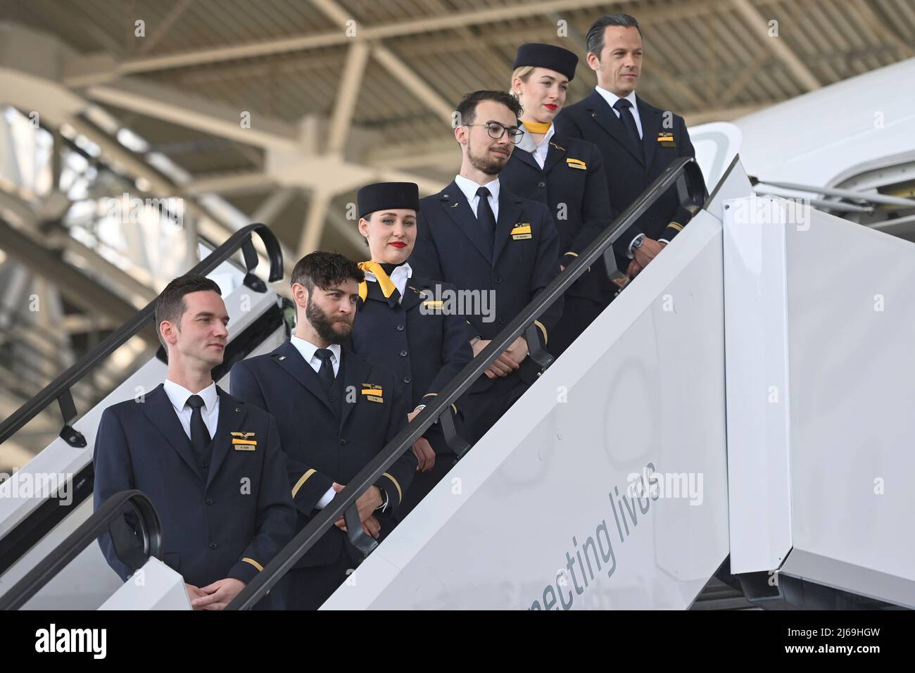 Temporäre Aushilfe: Lufthansa-Personal trägt an Bord von Swiss ...