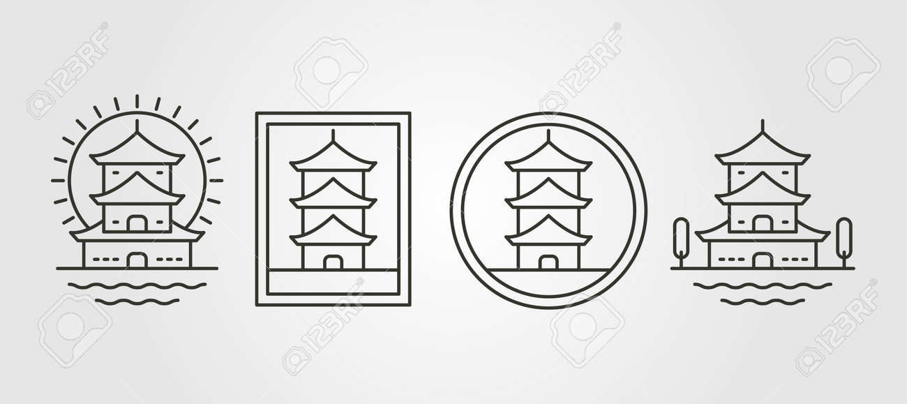 Set Of Pagoda Vector Line Logo Vector Symbol Illustration Design, Traditional House Bundle Logo Design Клипарты, SVG, векторы, и Набор Иллюстраций Без Оплаты Отчислений. Image 182386576