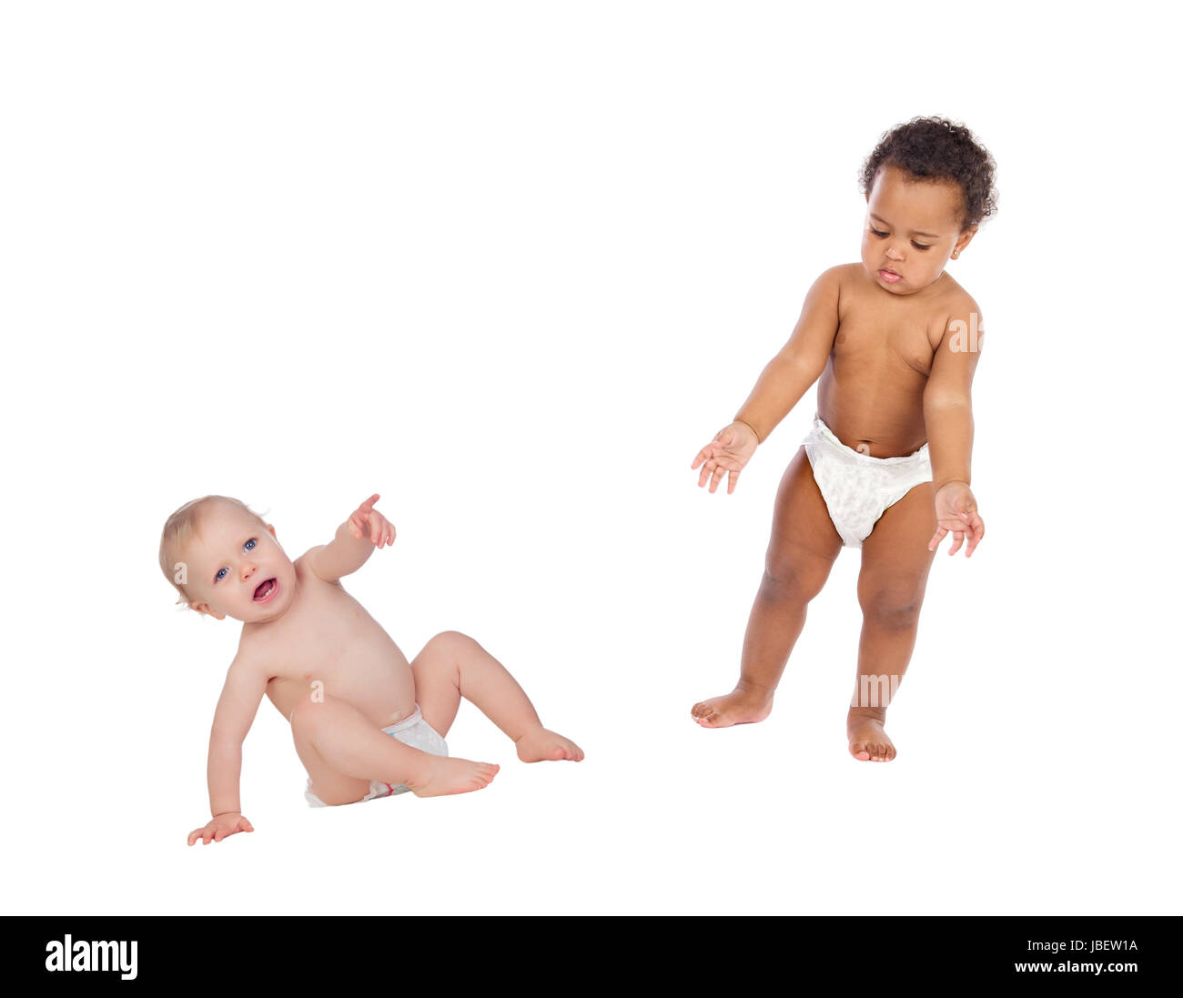 Dos bebés graciosos aislado de un fondo blanco Fotografía de stock - Alamy