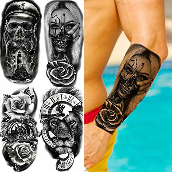 Skull Temporary Tattoos for Women Men 3D Pirate Captain Lion Warrior Evil Joker Gangster Fake Tattoo