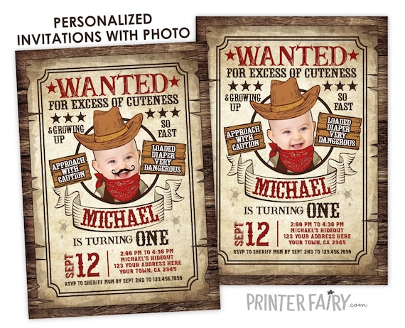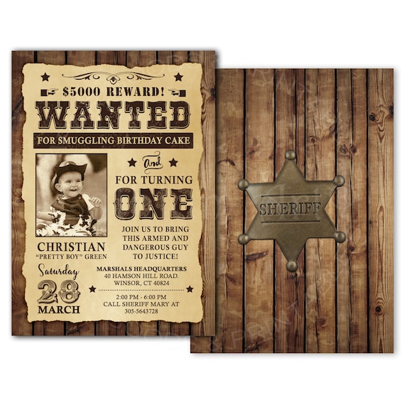 Western Geburtstagseinladung mit Foto, Steckbrief Einladung, Cowboy 1. Geburtstagseinladung, Wild West, Personalisierte Digital Invite - Etsy.de