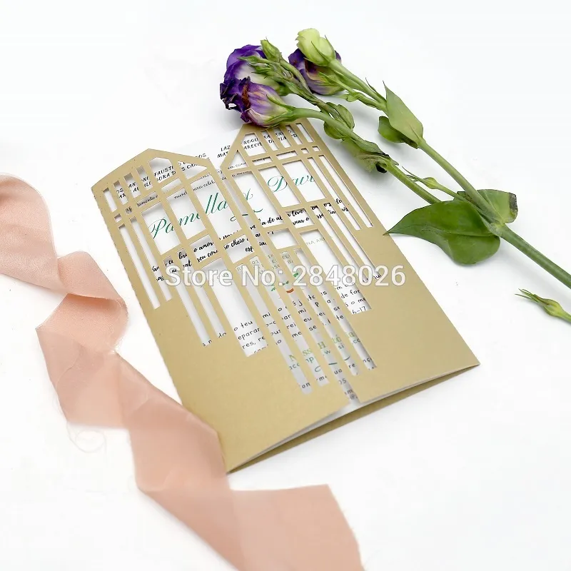 Goldene Gatefold Hochzeitseinladung Mit Laserschnitt, Einladungen Im Great Gatsby Stil, Personalisierte Gate Faltkarten Von 20,99 € | DHgate
