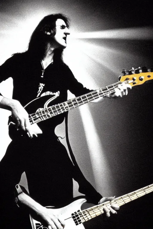 Award winning photo of Geddy Lee playing bass, 1989, | Stable Diffusion | OpenArt