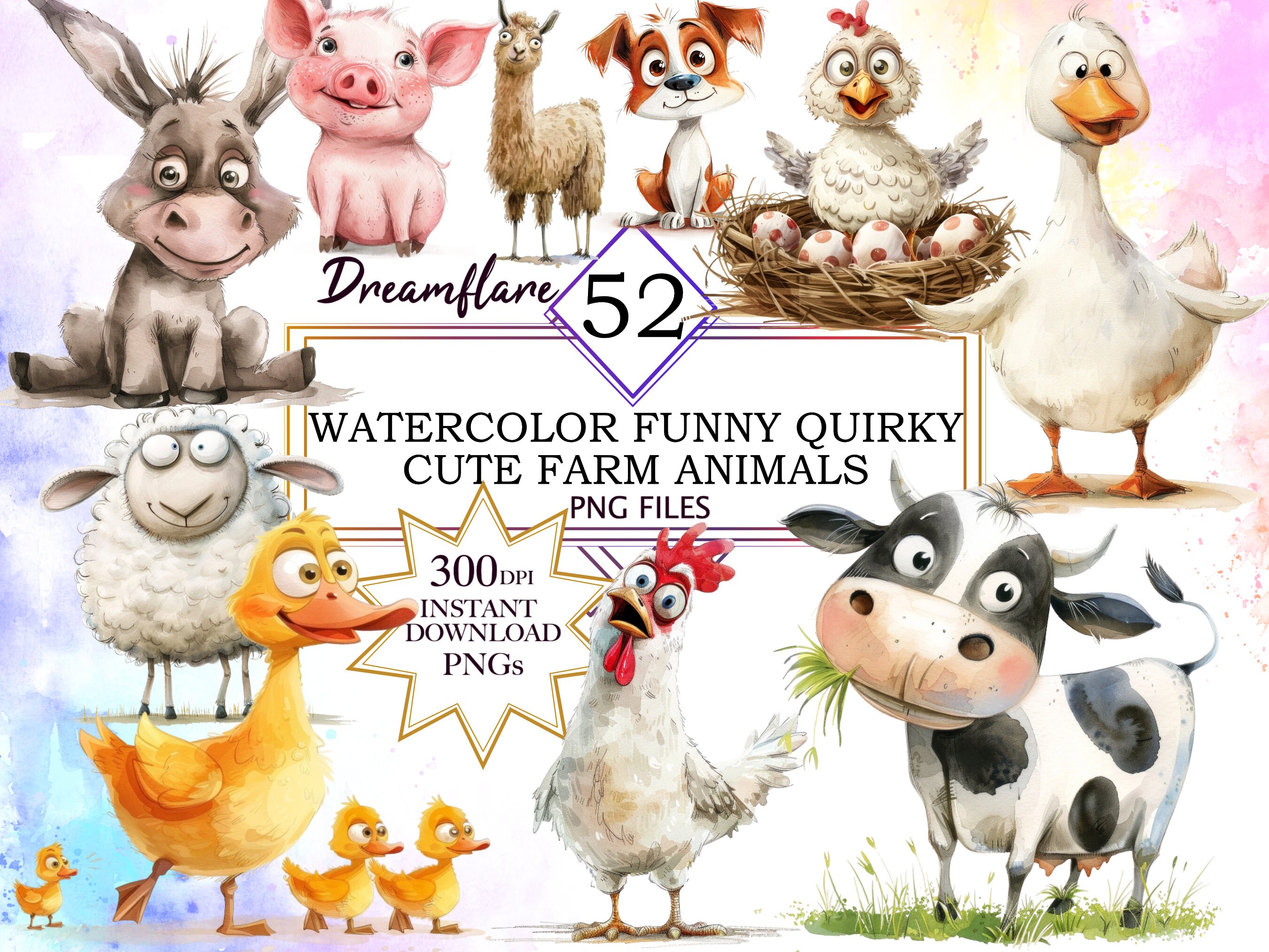 Quirky Farm Animals Clipart PNG Bundle, Memory Books, Card Making ...