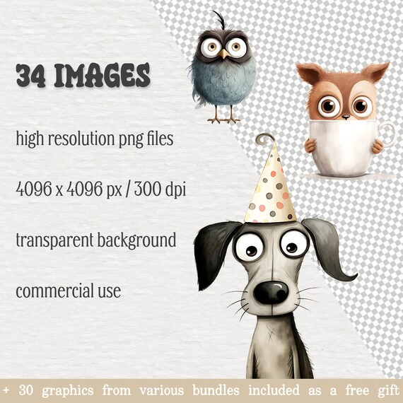 Hilarious Animals Clipart Bundle, Cute and Funny Animals Graphics ...