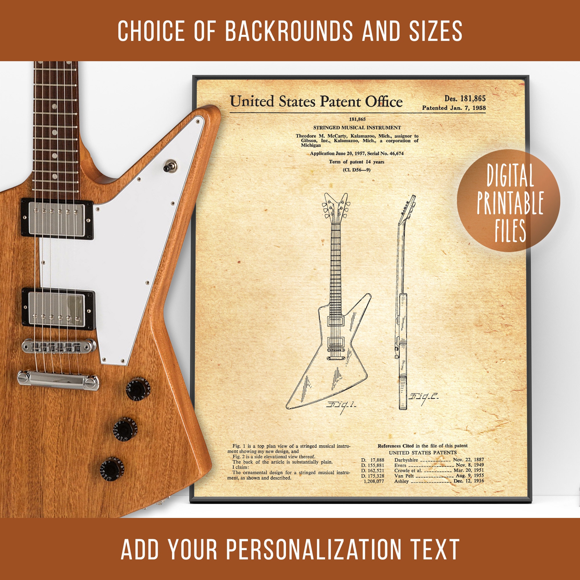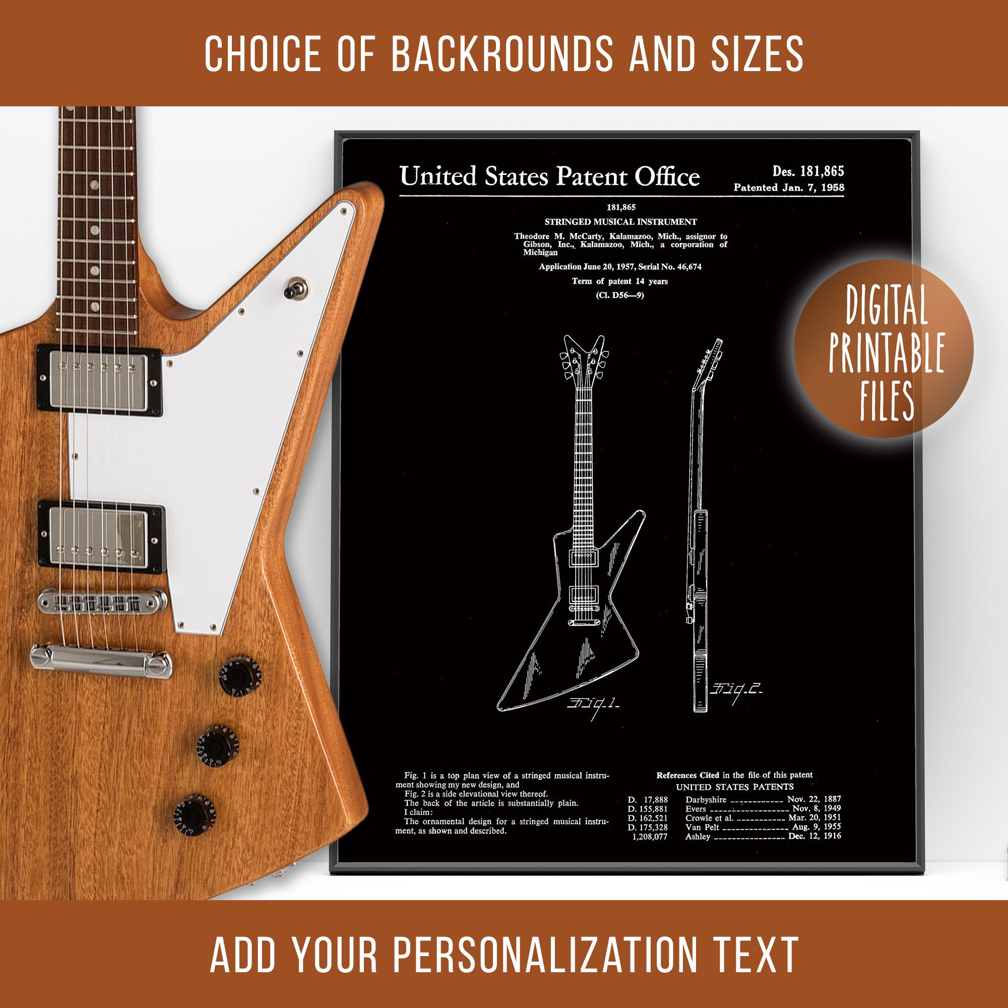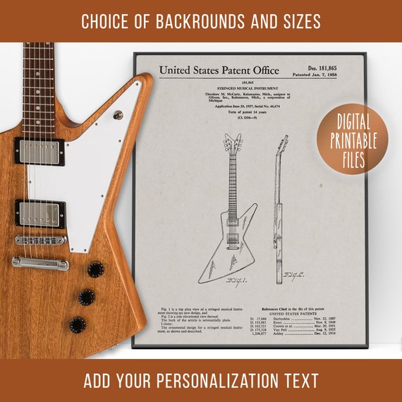 Gibson Entdecker Gitarre Vintage Patent Zeichnung Kunst, Digital druckbares Poster, Sofortiger Download Dateien, E-Gitarre Druck, Geschenk für ihn - Etsy.de
