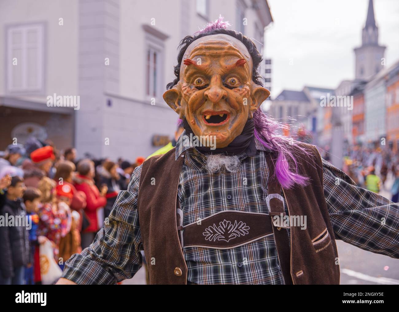 Villach, Austria - February 19, 2023: Carnival in Villach, Fasching, Participants in the annual parade wear colorful and masquerade clothing. Lei-Lei Stock Photo - Alamy