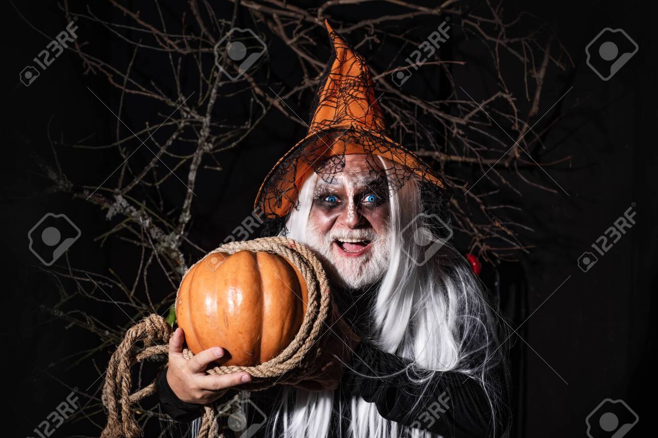 Teufel Mann Mit Blutigen Augen. Design Für Halloween-Banner. Halloween Bärtiger Mann Mit Blut Make-up. Gruselig Stockfoto - Bild von feiertag, hölle: 158154474