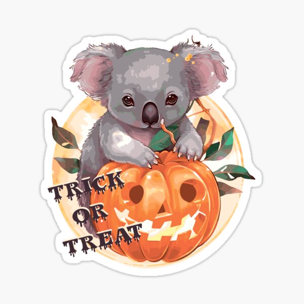 Sticker for Sale mit "Kawaii-Koala mit Hexenhut sitzt auf einem Kürbis. Niedliche Illustration für Halloween. Zum Bedrucken von Textilien, Drucken, T-Shirts, Einladungen, Postern, Drucken, Aufklebern. Süßes oder Saures" von Anastasiia Yurevych |