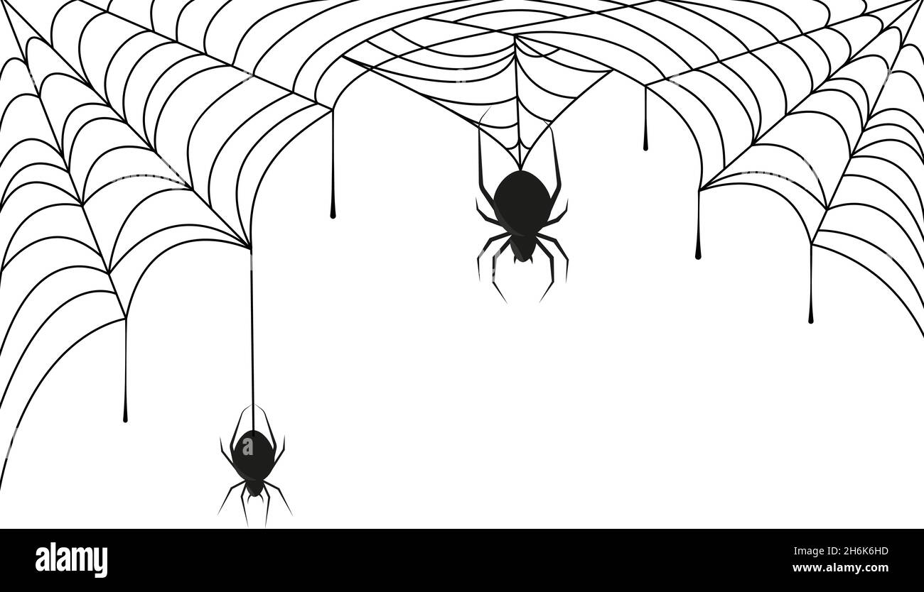 Spinne auf schwarzem Spinnennetz. Halloween Hintergrund oder Rahmen mit Webgewebe in der Ecke und Silhouette von Horror Spinnen Vektorbild Stock-Vektorgrafik - Alamy