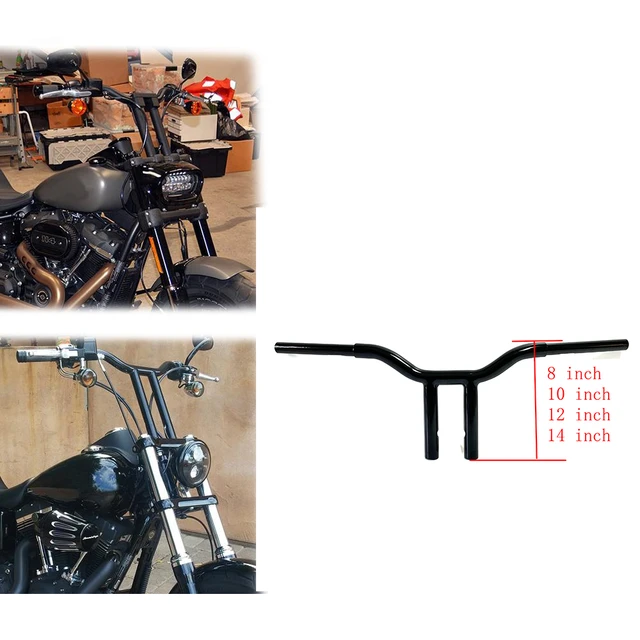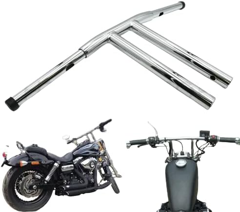 WSays 12'' Rise T-Bar Handlebar Drag Bar 1-1/4'' Diameter Gloss Black Compatible with 1996-2024 Harley Dyna Softail Sportster 883 1200 XL