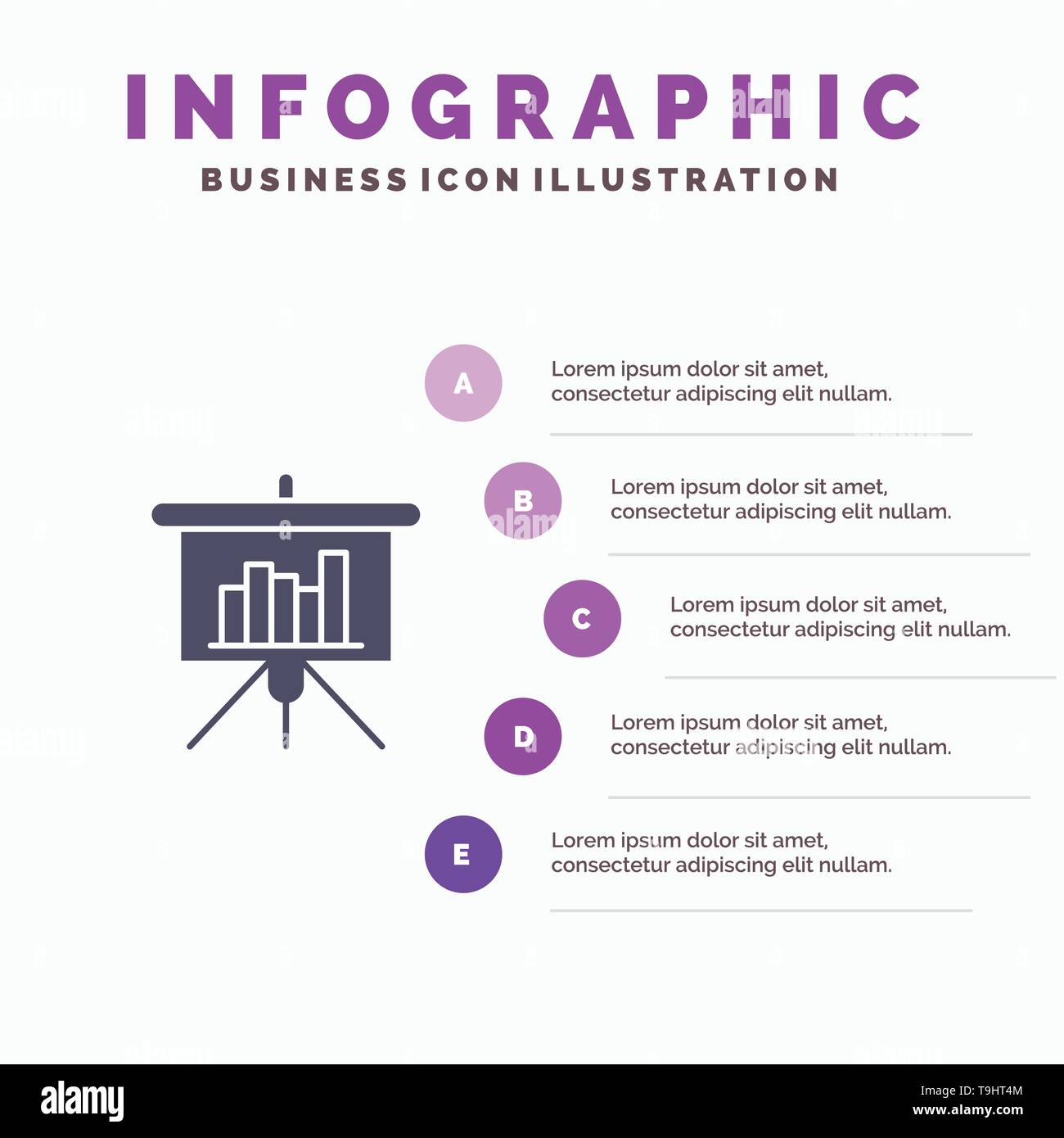 Präsentation, Tafel, PowerPoint, Bericht Solid Symbol Infografiken 5 Schritte Präsentation Hintergrund Stock-Vektorgrafik - Alamy