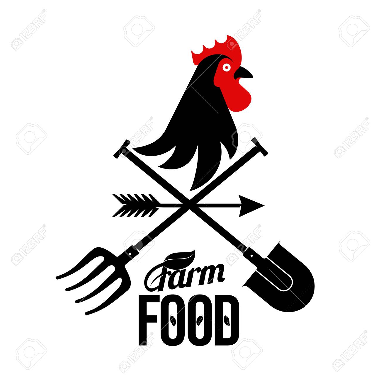 Bauernhof-Logo Mit Einem Hahn Und Einem Bauern Werkzeuge. Vektor-Illustration. Bauernhof Essen, Hühnerfarm. Web-Banner, Anzeigen, Broschüren, Business-Vorlagen. Isoliert Auf Einem Weißen Hintergrund. Lizenzfrei nutzbare SVG, Vektorgrafiken, Clip Arts ...