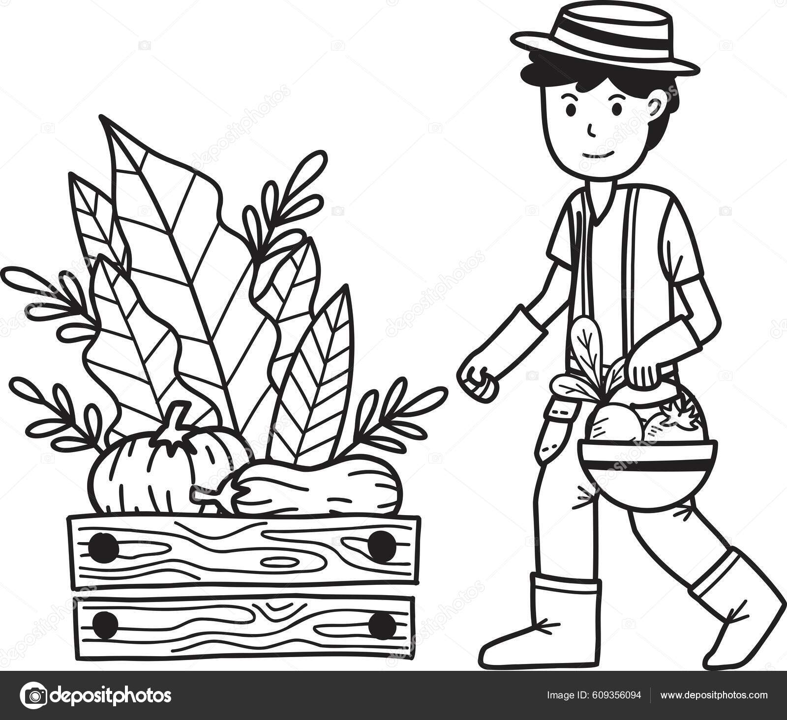 Der Bauer hält eine Kiste mit Gemüse. Herbsternte. Bauernmarkt-Logo. flache karikaturillustration lokalisiert auf weißem hintergrund. hand gezeichneter vektorcharakter. Mann Landarbeiter. 8418341 Vektor Kunst bei Vecteezy