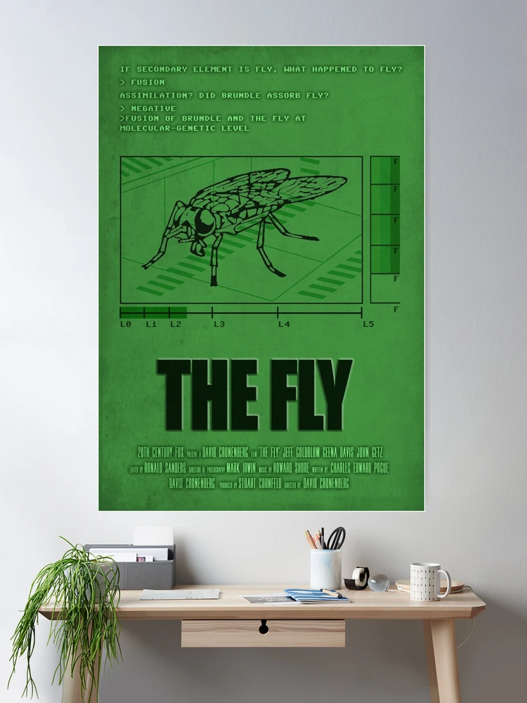 Poster for Sale mit "Die Fliege von David Cronenberg mit Jeff Goldblum, Geena Davis, 1986. Science Fiction Body Horror Alternative Movie Art Quote" von cinemadnesshirt | Redbubble