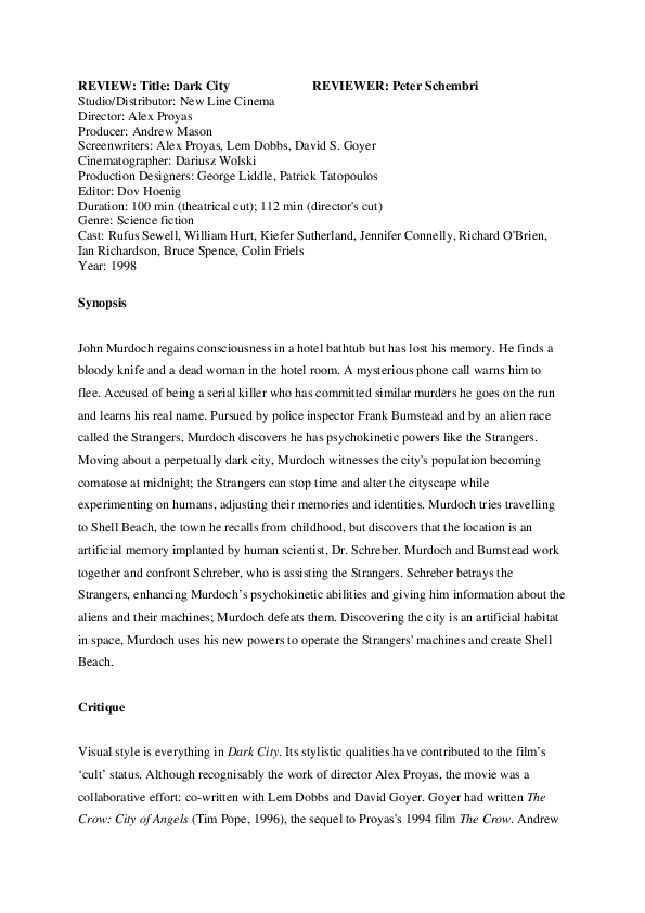 Dark City - Review - Photos - Ozmovies