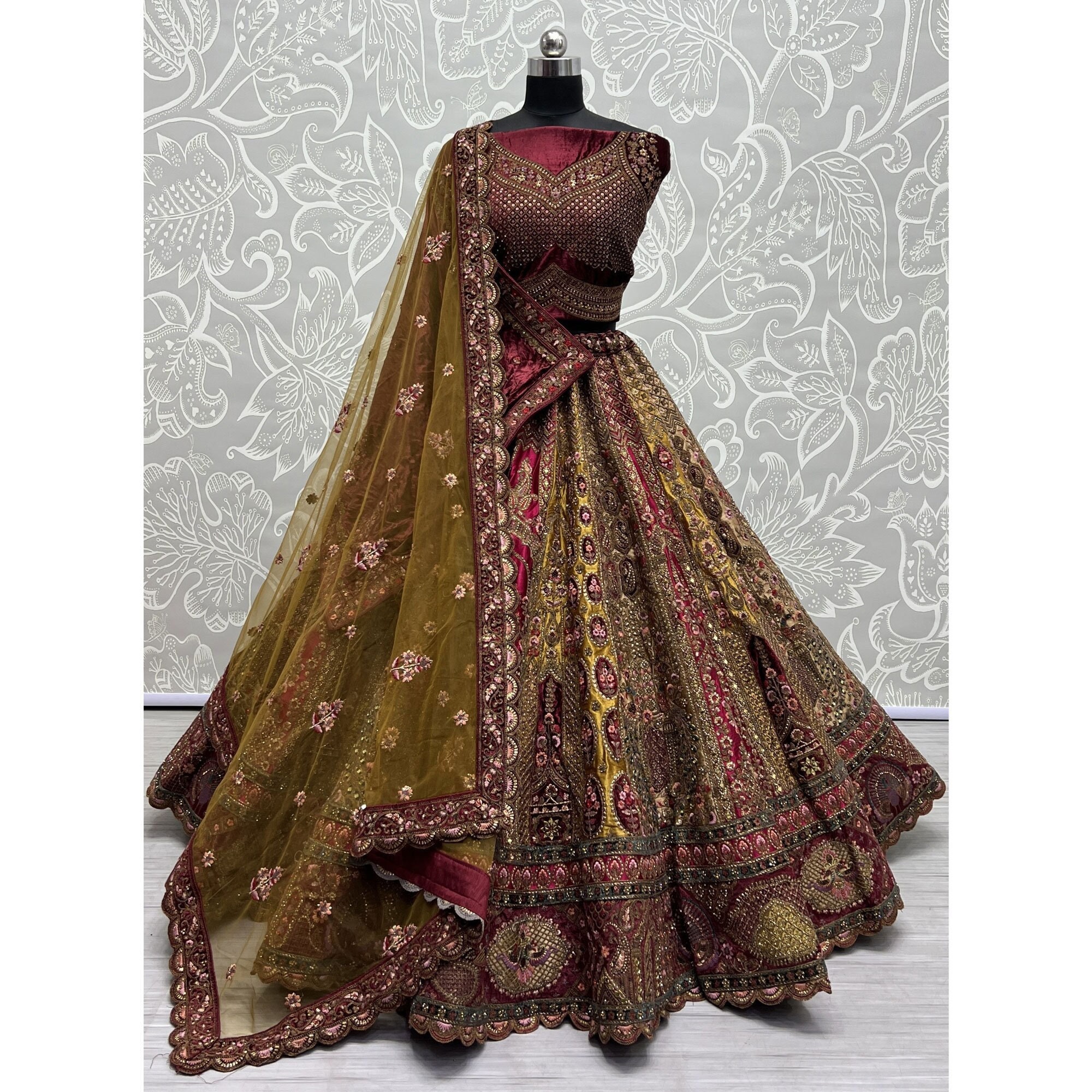 Bridal Wedding Maroon Lehenga Choli Chunri Lengha Bird Design Indian Sari Saree | eBay